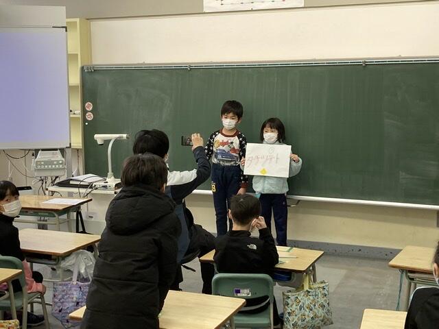 それぞれのグループが練習したことをカメラに向かって発表していました。