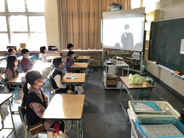 今日の朝、全校朝会をテレビ放送で行いました。