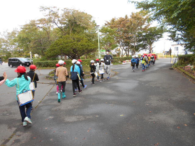 写真は学校を出発するときの子どもたちのようすです。