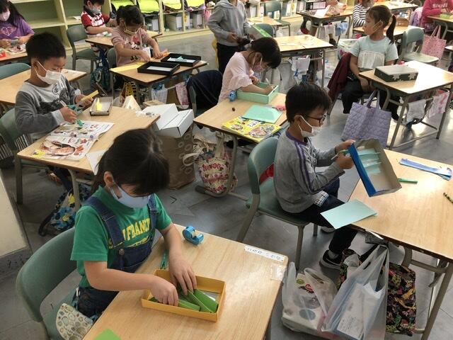 1年生は生活科でどんぐりを使ったおもちゃ作りを行なっていました。