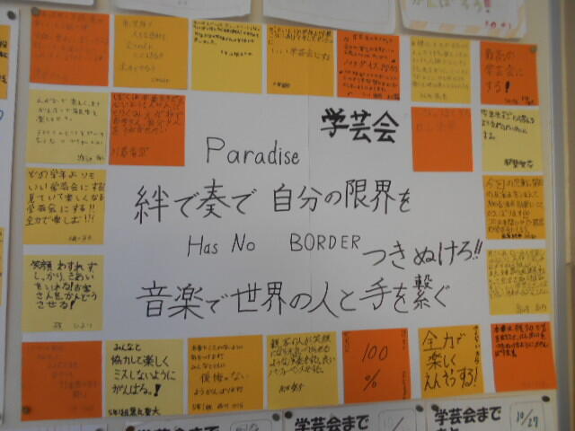 学芸会の取組を振り返る 投稿日時 : 2023/11/15 編集長 カテゴリ: 学芸会の一般公開がおわって1週間以上 たちますが、そこで子どもたちが身につけたり 学んだりしたことは大きいです。 廊下にはその時の取組が残っていて、 子どもたちも振り返ることでさらに次の ステージにすすんでいます。