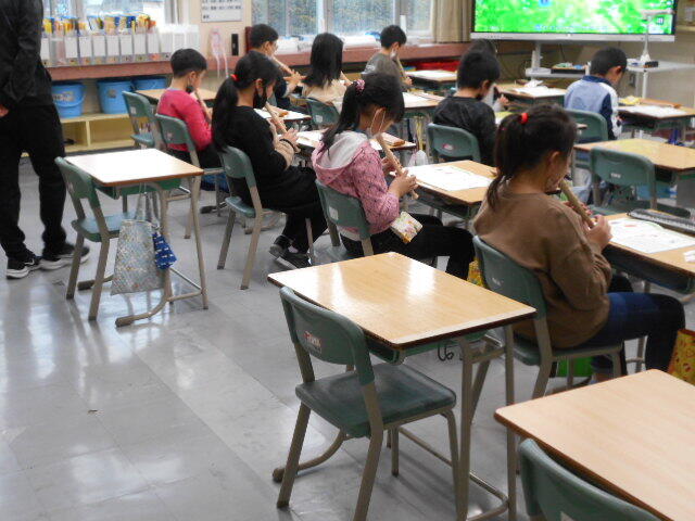 3年生音楽 投稿日時 : 2023/03/16 編集長 カテゴリ: コロナがまだ収束したわけではありませんが、 レベル分類が1になっているので、音楽の 授業も感染に留意しながらコロナ前に戻って きているところもあります。 3年生は教室でリコーダーを演奏できるように なっています。