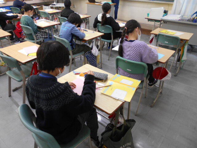 5年生算数 投稿日時 : 2023/02/24 編集長 カテゴリ: 5年生の算数では立体について学んでいます。 写真は円柱の展開図をコンパスと定規を用いて 作成している様子です。 コンパスは以前から使用していますが、 操作はなかなか難しいです。