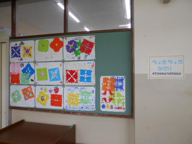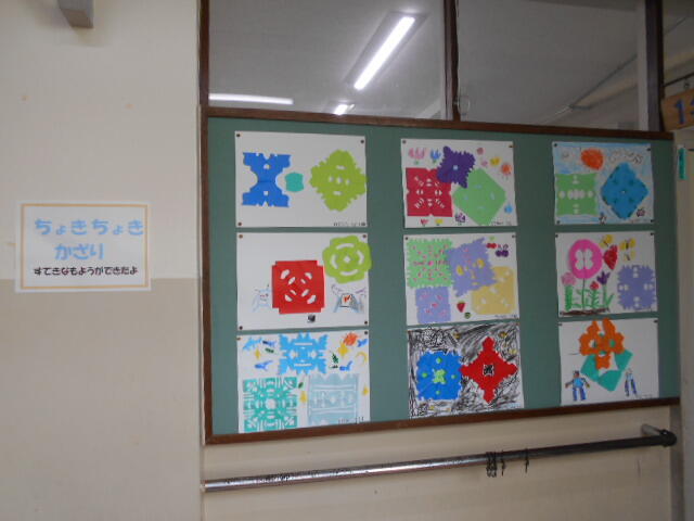1年生 図工 投稿日時 : 2023/06/07 編集長 カテゴリ: 「ちょきちょきかざり」という教材です。 色紙を折ってハサミで好きなように切って 開いてみると、いろいろな形ができます。 予想もしないようなもようができることもあり 楽しいです。