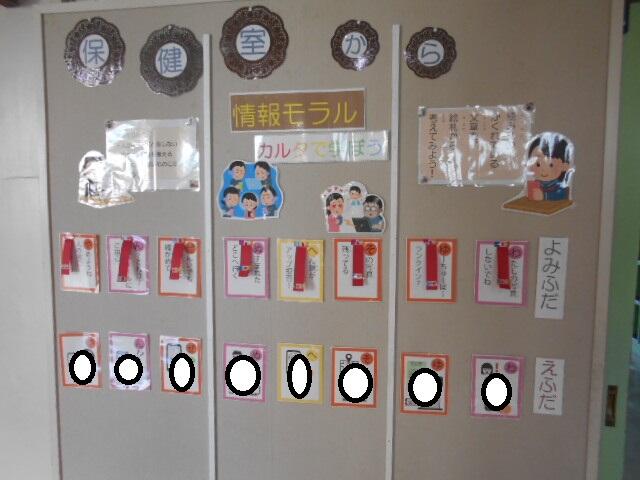保健室からの掲示 投稿日時 : 2023/10/05 編集長 カテゴリ: 保健室からの発信と言えば 子どもたちのからだについてが多いですが、 本校の先月の保健室からの発信は情報モラルについてでした。 情報モラルにかかわる件が巡り巡って子どもたちの 心や気持ちに影響を与えるということで 特徴ある掲示だと思います。
