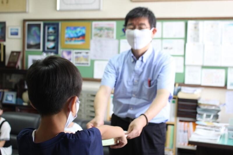 ノートを提出した子どもたちが校長先生から表彰を受けました。