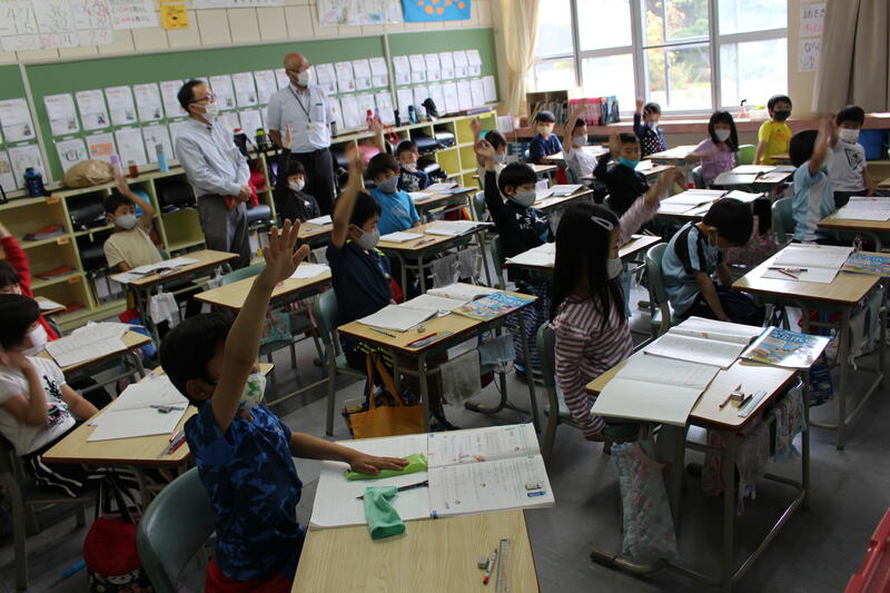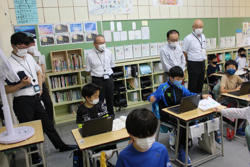 今日は、ICT機器の活用について、お客さんが視察に訪れました。