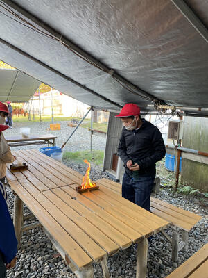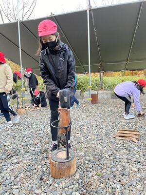 火起こしと薪割りの体験活動を行いました。火起こしは、全員成功しました!