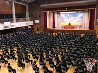 集会では冬休み中に全道大会があるスケートと女子バスケットボール部の決意表明の場面もありました。