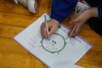 はじめに、5クラスある1年生全体で、スライドを参考に「千歳市とカーボンニュートラル」について学び、次にクラスごと、5つのブースに分かれて、具体策を考える「ワークショップ」をおこないました。