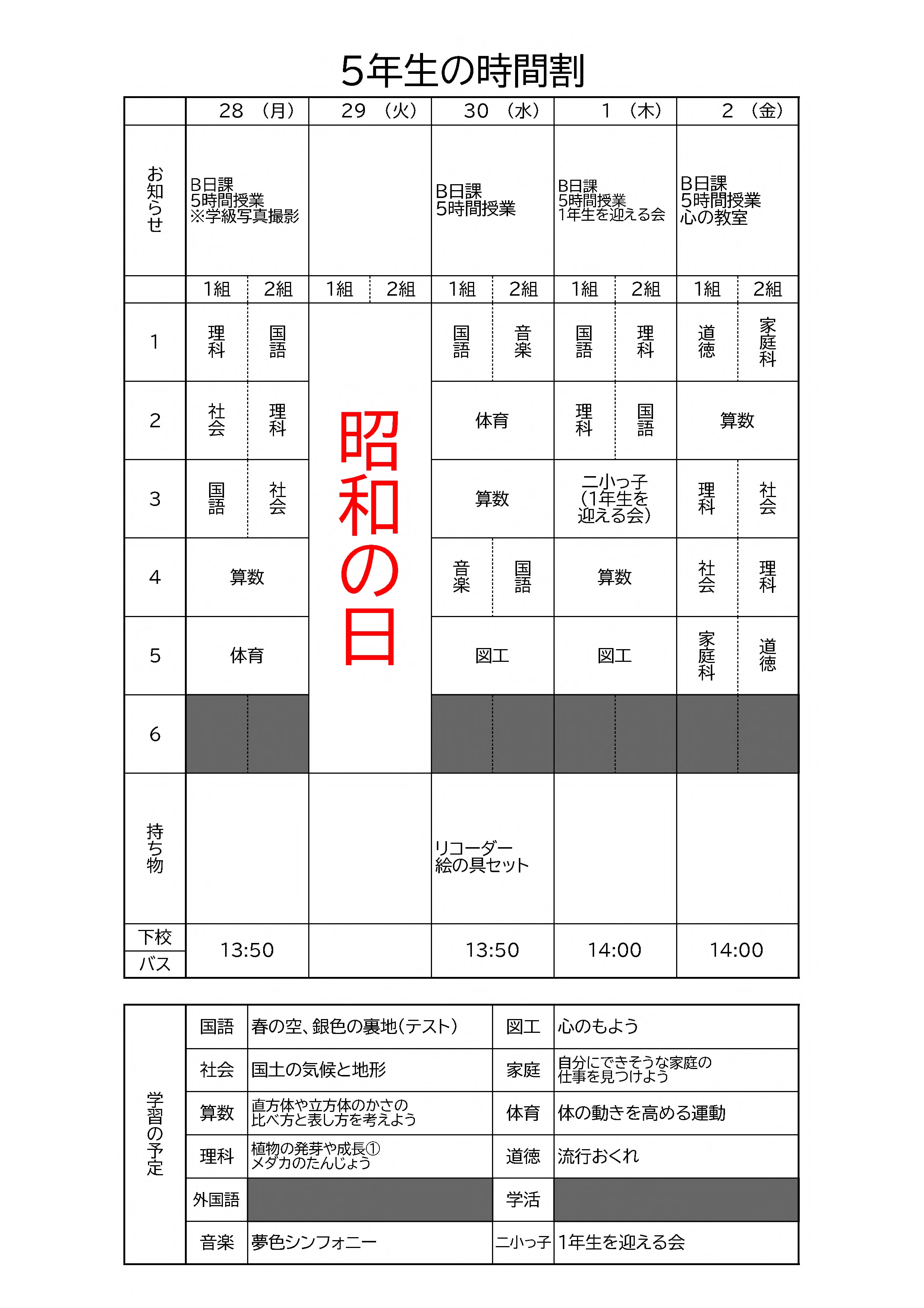 2025年 5年生のページです 全ての記事 全ての記事 カテゴリ アーカイブ 2026年1月 (2) 2025年12月 (4) 2025年11月 (4) 2025年10月 (5) 2025年9月 (4) 2025年8月 (1) 2025年7月 (4) 2025年6月 (4) 2025年5月 (5) 2025年4月 (4) 50件 1件 5件 10件 20件 50件 100件 時間割(37週目) 投稿日時 : 01/23 編集長 カテゴリ: 5年0126~.jpg 時間割(36週目) 投稿日時 : 01/16 編集長 カテゴリ: 5年0119~.jpg 時間割(35週目) 投稿日時 : 2025/12/23 編集長 カテゴリ: 5年0112~.jpg 時間割(34週目) 投稿日時 : 2025/12/19 編集長 カテゴリ: 5年1222~.jpg 時間割(33週目) 投稿日時 : 2025/12/12 編集長 カテゴリ: 5年1215~.jpg 時間割(32週目) 投稿日時 : 2025/12/05 編集長 カテゴリ: 5年1208~.jpg 時間割(31週目) 投稿日時 : 2025/11/28 編集長 カテゴリ: 5年1201~.jpg 時間割(30週目) 投稿日時 : 2025/11/21 編集長 カテゴリ: 5年1124~.jpg 時間割(29週目) 投稿日時 : 2025/11/14 編集長 カテゴリ: 5年1117~.jpg 時間割(28週目) 投稿日時 : 2025/11/07 編集長 カテゴリ: 5年1110~.jpg 時間割(27週目) 投稿日時 : 2025/10/31 編集長 カテゴリ: 5年1103~.jpg 時間割(26週目) 投稿日時 : 2025/10/24 編集長 カテゴリ: 5年1027~.jpg 時間割(25週目) 投稿日時 : 2025/10/16 編集長 カテゴリ: 5年1020~.jpg 時間割(24週目) 投稿日時 : 2025/10/10 編集長 カテゴリ: 5年1013~.jpg 時間割(23週目) 投稿日時 : 2025/10/03 編集長 カテゴリ: 5年1006~.jpg 時間割(22週目) 投稿日時 : 2025/09/26 編集長 カテゴリ: 5年0929~.jpg 時間割(21週目) 投稿日時 : 2025/09/19 編集長 カテゴリ: 5年0922~.jpg 時間割(20週目) 投稿日時 : 2025/09/16 編集長 カテゴリ: 5年0915~.jpg 時間割(19週目) 投稿日時 : 2025/09/05 編集長 カテゴリ: 5年0908~.jpg 時間割(18週目) 投稿日時 : 2025/08/29 編集長 カテゴリ: 5年0901~.jpg 時間割(17週目) 投稿日時 : 2025/07/28 編集長 カテゴリ: 5年0825~.jpg 時間割(16週目) 投稿日時 : 2025/07/18 編集長 カテゴリ: 5年0721~.jpg 時間割(15週目) 投稿日時 : 2025/07/11 編集長 カテゴリ: 5年0714~.jpg 5年・時間割(14週目) 投稿日時 : 2025/07/04 編集長 カテゴリ: 5年0707~.jpg 5年・時間割(13週目) 投稿日時 : 2025/06/27 編集長 カテゴリ: 5年0630~.jpg 5年・時間割(12週目) 投稿日時 : 2025/06/20 編集長 カテゴリ: 5年0623~.jpg 5年・時間割(11週目) 投稿日時 : 2025/06/13 編集長 カテゴリ: 5年0616~.jpg 5年・時間割(10週目) 投稿日時 : 2025/06/06 編集長 カテゴリ: 5年0609~.jpg 5年・時間割(9週目) 投稿日時 : 2025/05/30 編集長 カテゴリ: 5年 0602~.jpg 5年・時間割(8週目) 投稿日時 : 2025/05/23 編集長 カテゴリ: 5年 0526~.jpg 5年・時間割(7週目) 投稿日時 : 2025/05/16 編集長 カテゴリ: 5年0519~.jpg 5年・時間割(6週目) 投稿日時 : 2025/05/09 編集長 カテゴリ: 5年0512~.pdf 5年0512~.jpg 5年・時間割(5週目) 投稿日時 : 2025/05/02 編集長 カテゴリ: 5年0505~.pdf 5年0505~.jpg 5年・時間割(4週目) 投稿日時 : 2025/04/25 編集長 カテゴリ: 5年0428~.pdf ★4月28日~ 5年生.jpg 5年・時間割(3週目) 投稿日時 : 2025/04/18 編集長 カテゴリ: 5年0421~.pdf 5年・時間割(2週目) 投稿日時 : 2025/04/12 編集長 カテゴリ: 5年0414~.pdf 5年・時間割(1週目) 投稿日時 : 2025/04/07 編集長 カテゴリ: 5年生 0407~.pdf