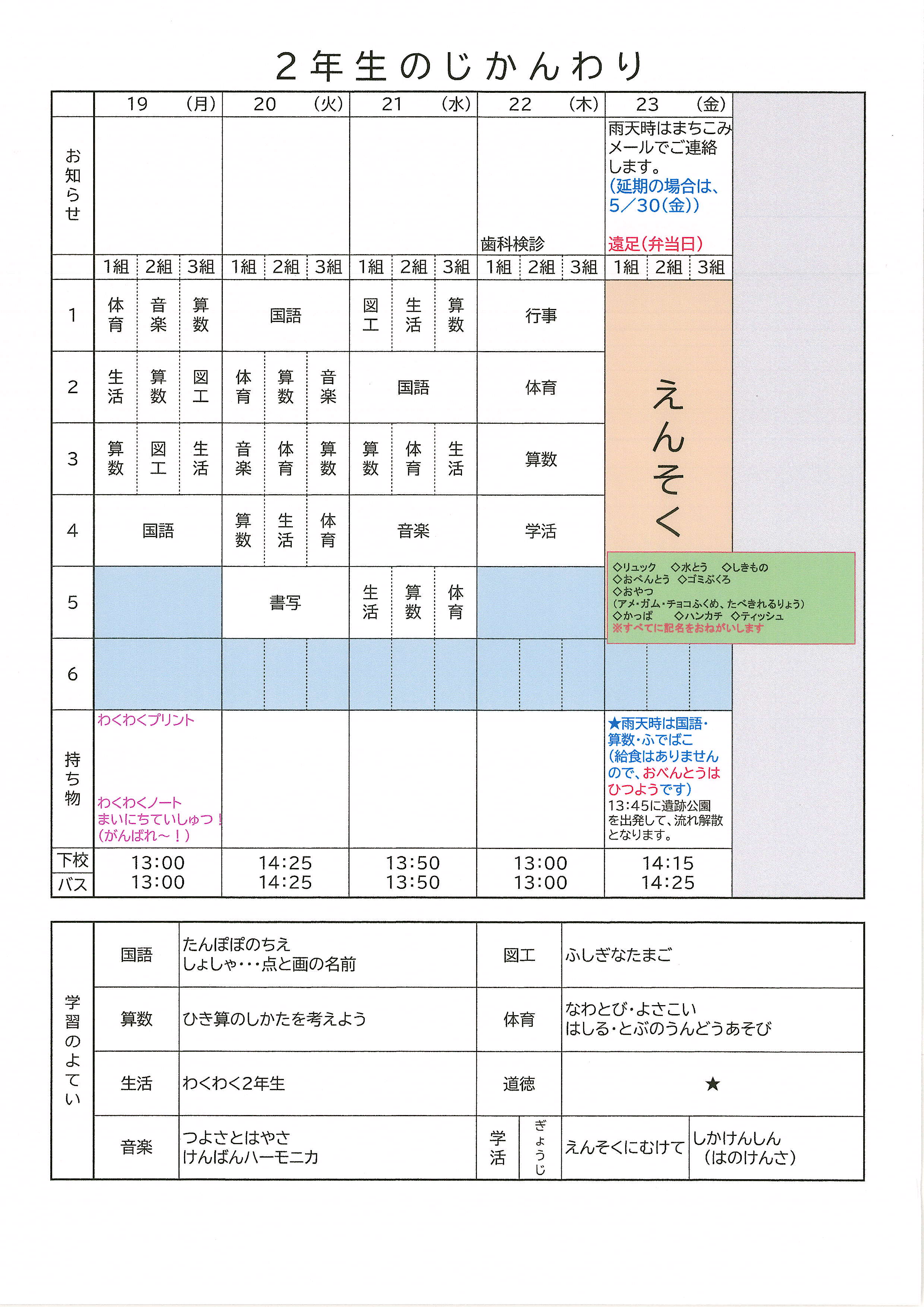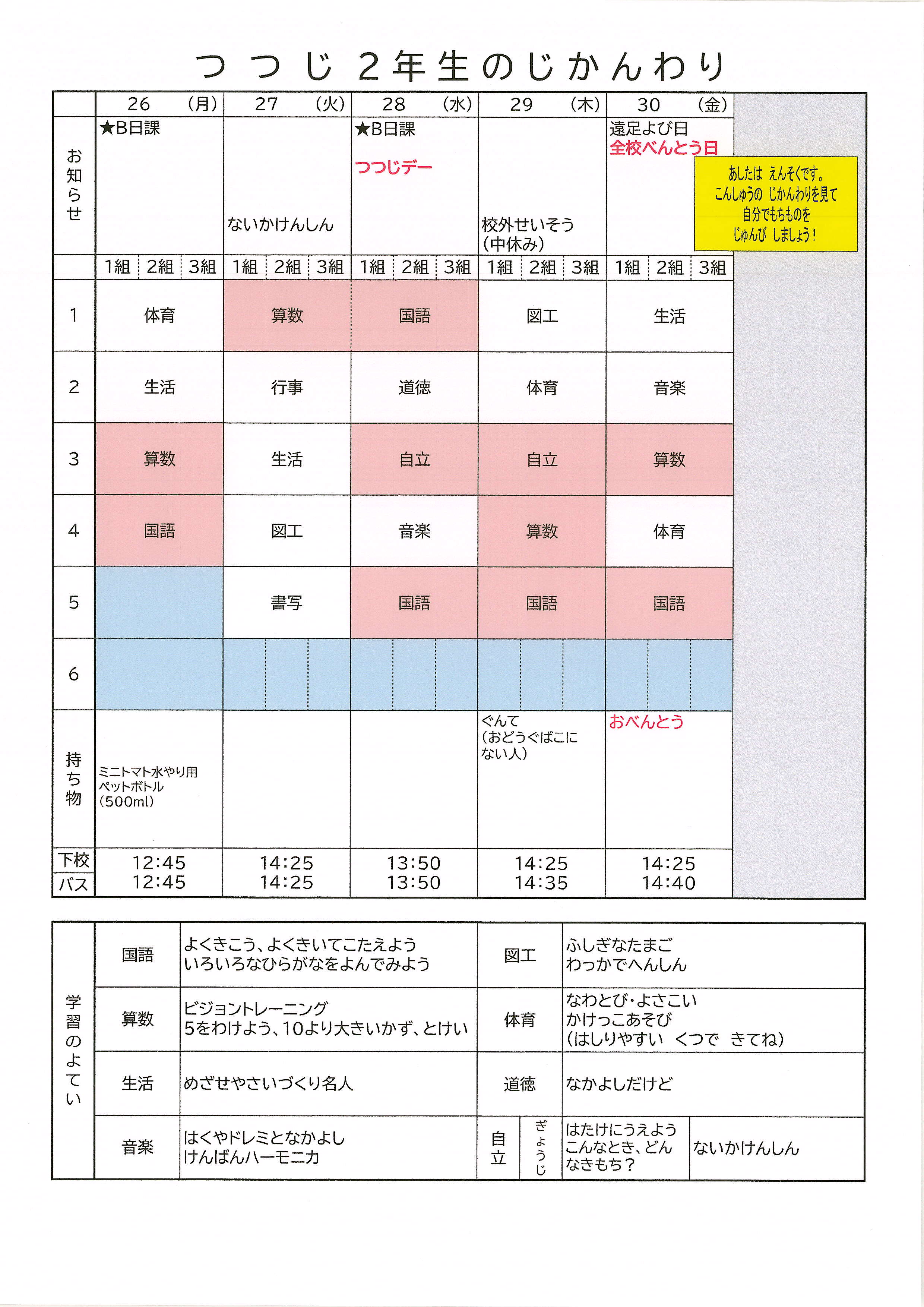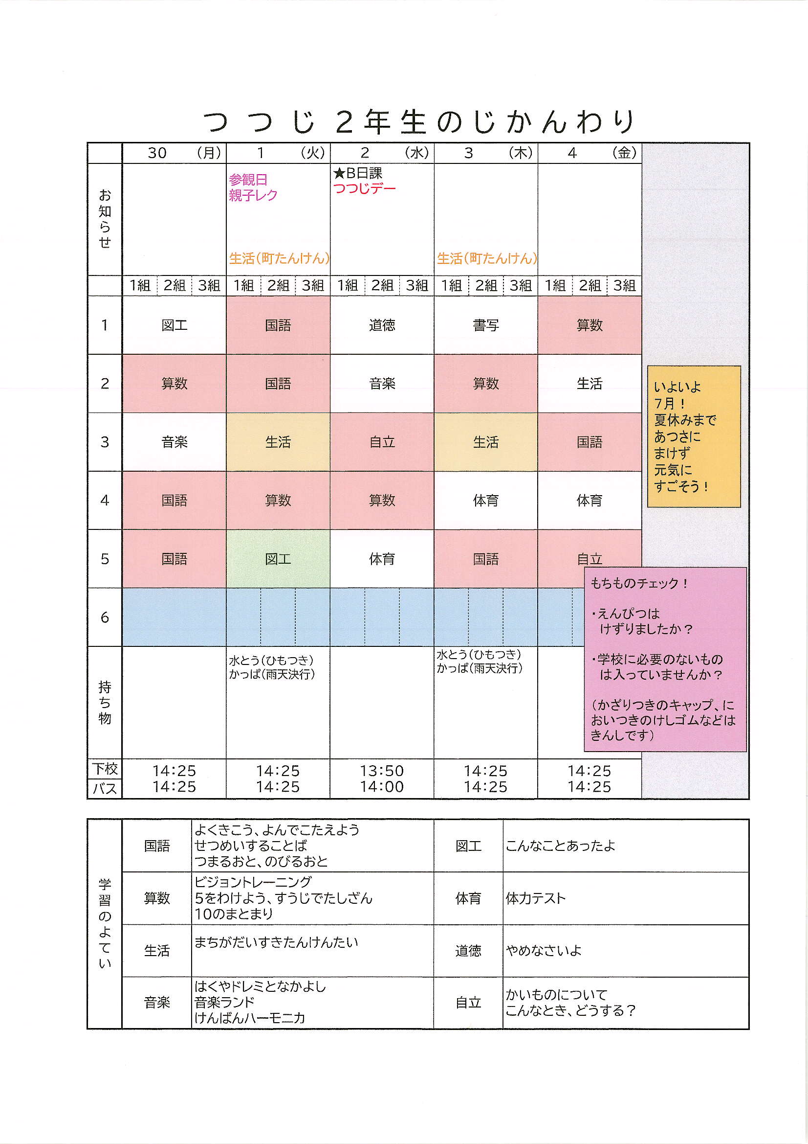 2年・時間割(3週目) 投稿日時 : 2025/04/18 編集長 カテゴリ: 一部表示されていない部分がありましたので、新しいものを掲載し直しました。 2年0421~.pdf 2年つつじ0421~.pdf