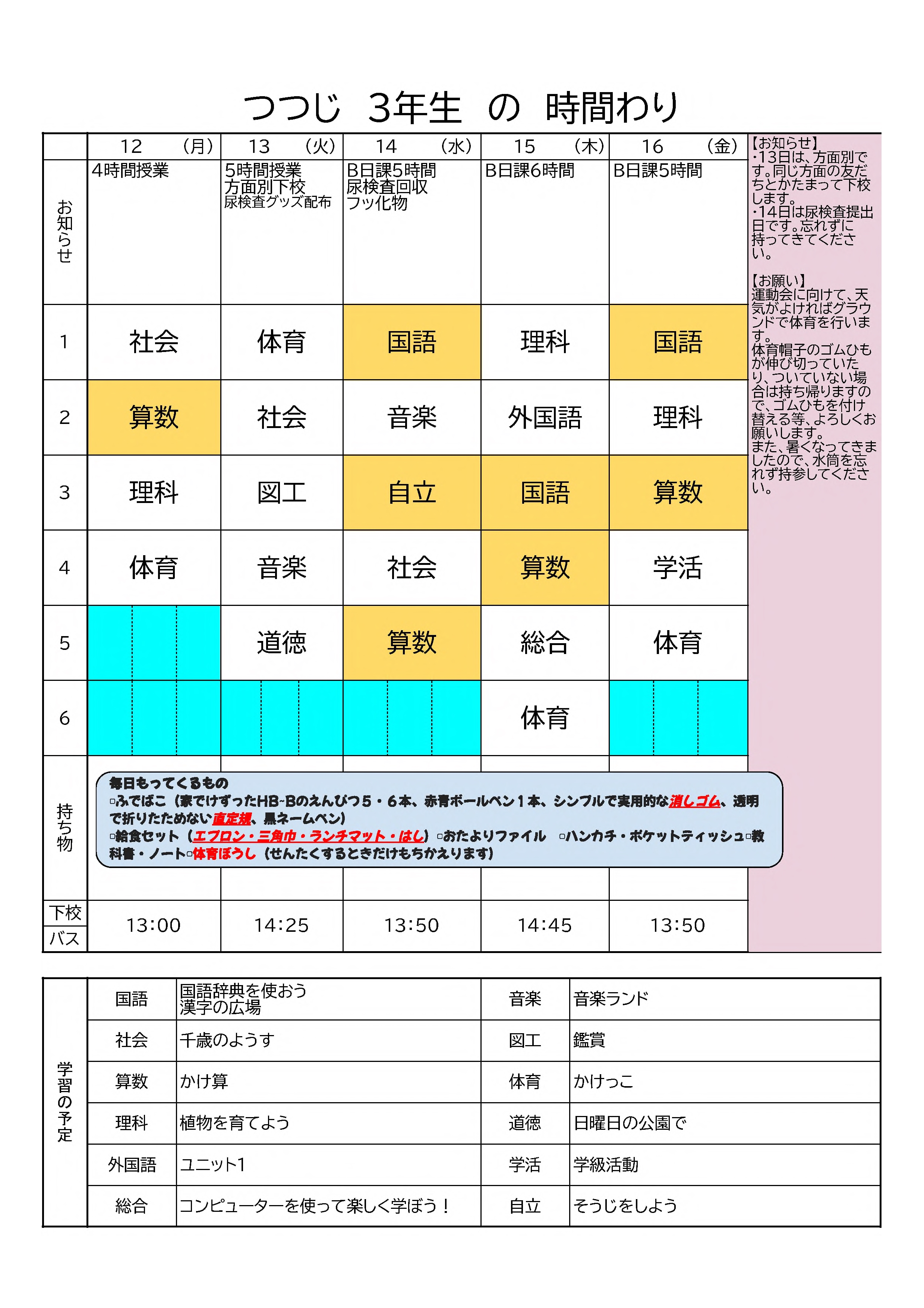 3年・時間割(5週目)