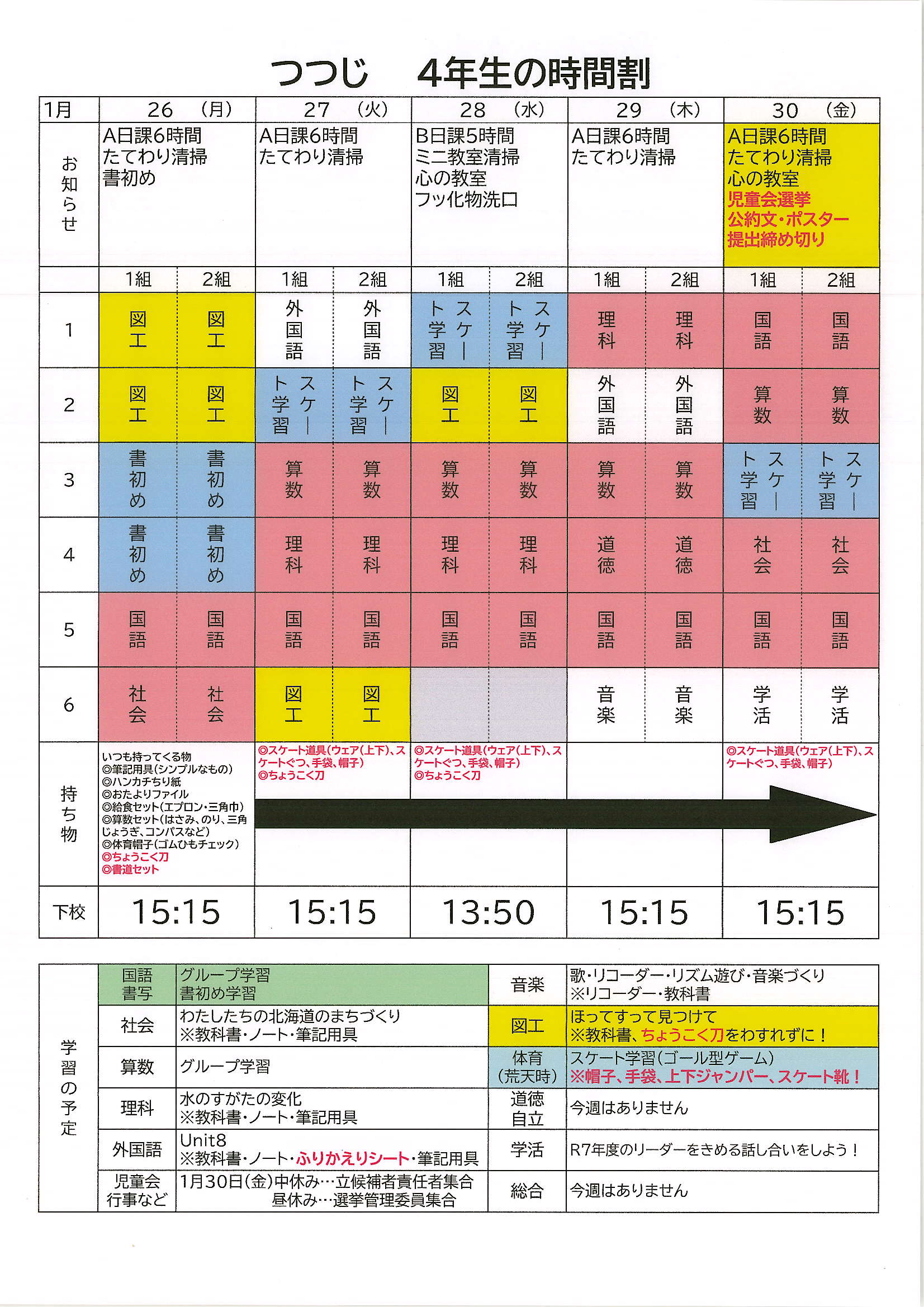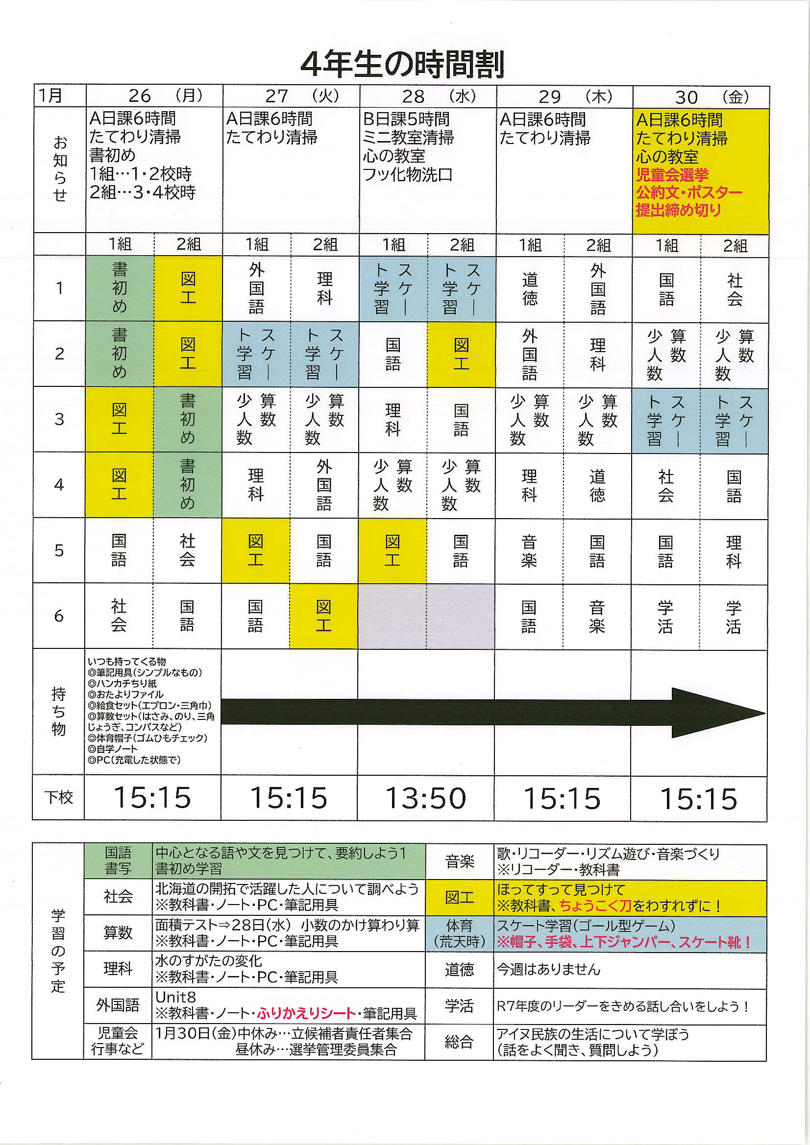 時間割(37週目)