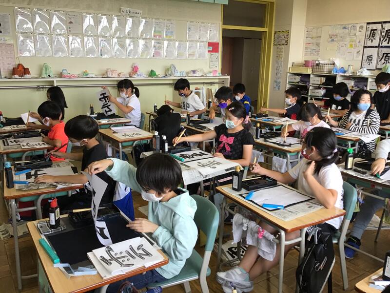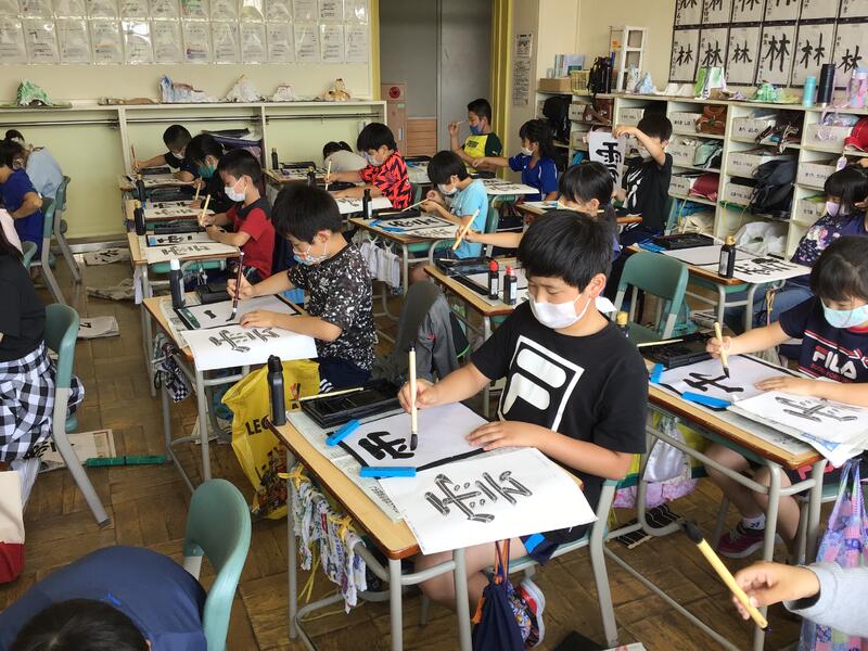 今日は4年生が5時間目の書写の授業で「雲」という文字を書いていました。