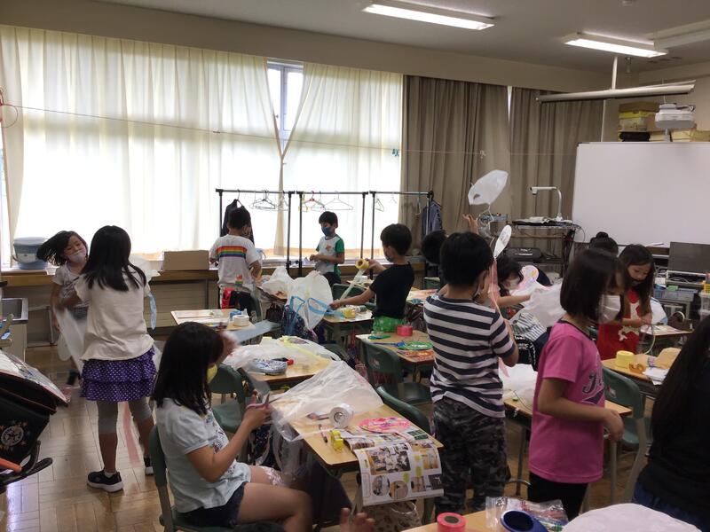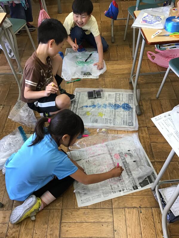 3年生はビニール袋をデコレーションする図工の学習を行っていました。