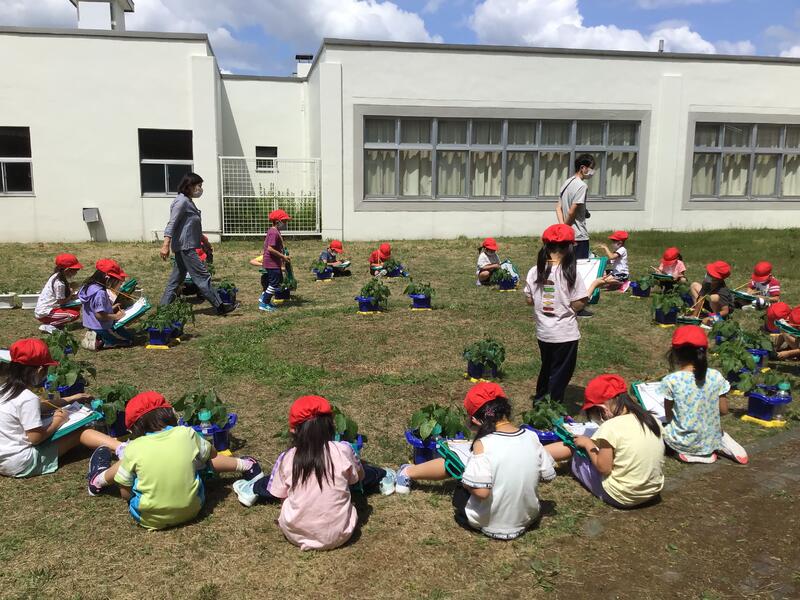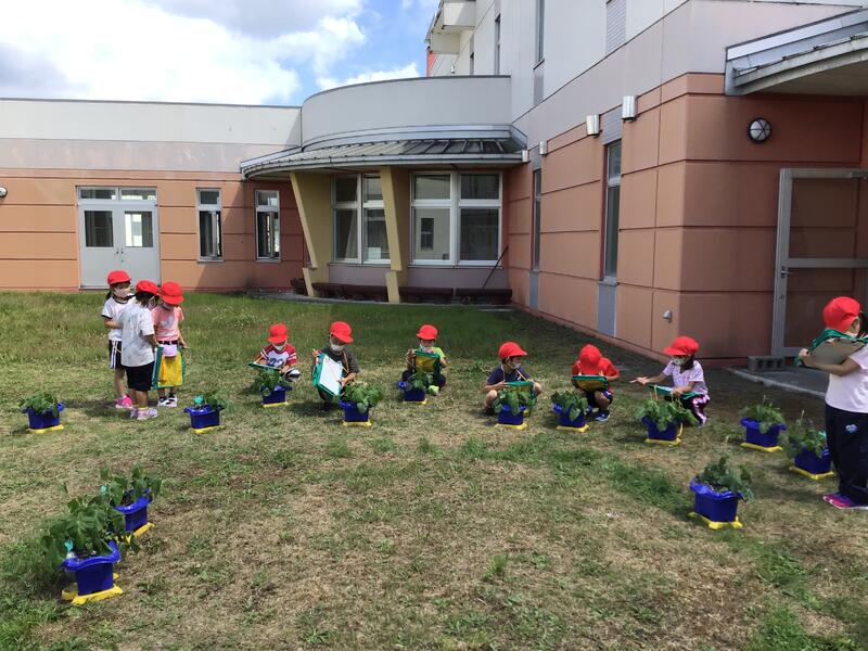 日に日に大きく成長しています。子どもたちは成長したアサガオの絵と観察して気が付いたことをひとりひとりまとめました。