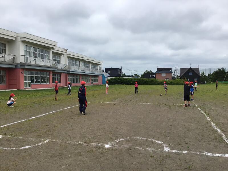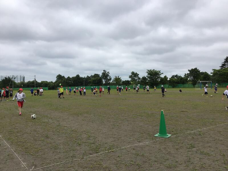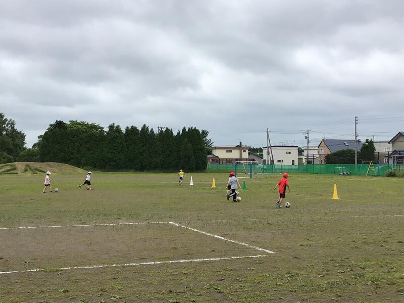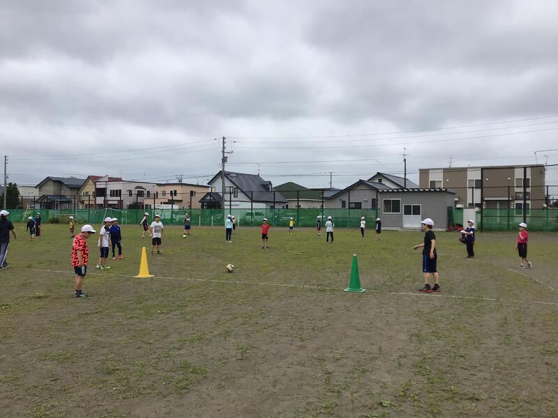 今日は、初めにグループごとに分かれてパスの練習をした後ドリブルワークの練習をしていました。