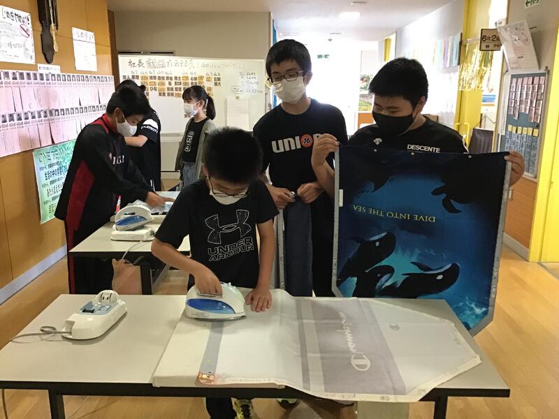 今日は6年生がエプロンづくりをしていました。今日の作業はまち針を使って布をとめ、アイロンがけを行う作業です。子どもたちはとても丁寧に作業しています。