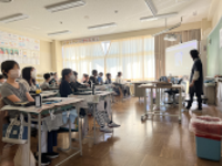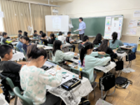 4年生の総合学習(世界をみつめよう)で、千歳在住のボリビア出身の男性を講師に迎えての学習を行いました。ボリビアの文化や習慣、食べ物など、その国のさまざまな事柄を画像を交えながら説明を受けました。終了後も講師の先生を囲んでお話を聴き、興味と関心がさらに高まりました。