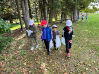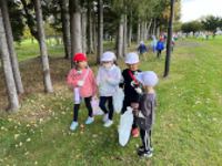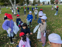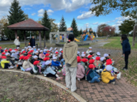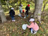 生活科の学習で、1年生が遺跡公園で落ち葉や木の実を探して集めました。集めた材料は、図工の作品作りで使用します。みんな、自分の使いたいものを楽しそうに探していました。
