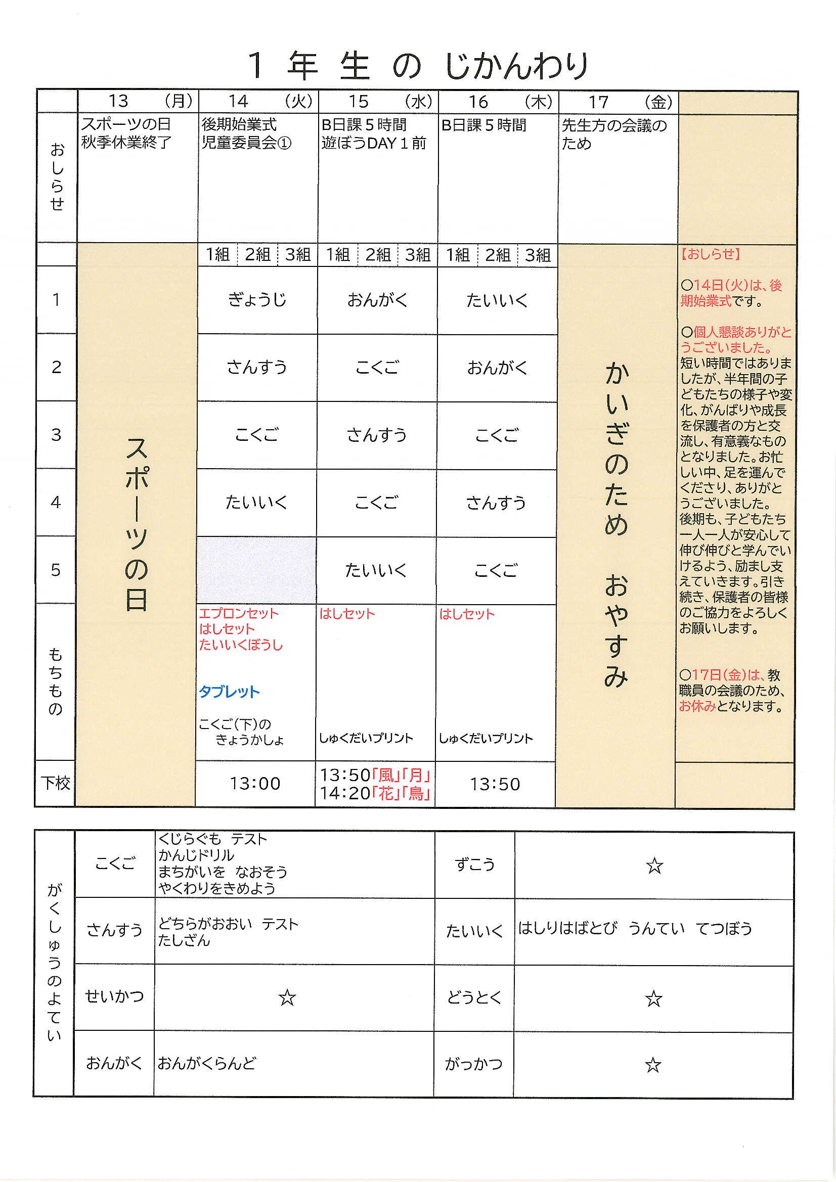 2025年10月の記事一覧 2025年10月 全ての記事 カテゴリ アーカイブ 2026年1月 (2) 2025年12月 (4) 2025年11月 (4) 2025年10月 (5) 2025年9月 (4) 2025年8月 (1) 2025年7月 (4) 2025年6月 (4) 2025年5月 (5) 2025年4月 (4) 10件 1件 5件 10件 20件 50件 100件 時間割(26週目) 投稿日時 : 2025/10/24 編集長 カテゴリ: 1年1027~.jpg 1年つつじ1027~.jpg 時間割(25週目) 投稿日時 : 2025/10/16 編集長 カテゴリ: 1年1020~.jpg 1年つつじ1020~.jpg 時間割(24週目) 投稿日時 : 2025/10/10 編集長 カテゴリ: 1年1013~.jpg 1年つつじ1013~.jpg 時間割(23週目) 投稿日時 : 2025/10/03 編集長 カテゴリ: 1年1006~.jpg 1年つつじ1006~.jpg
