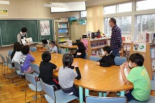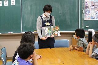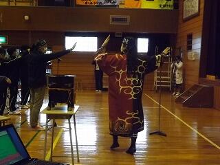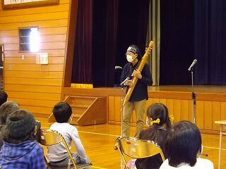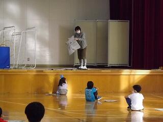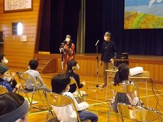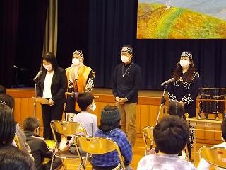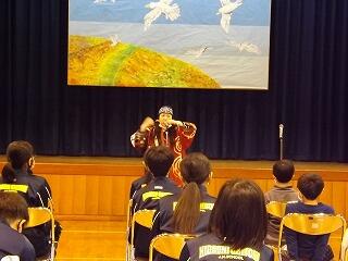 「きつねのチャランケ」という本の読み聞かせとアイヌの楽器の紹介です。