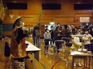ホリッパと呼ばれるアイヌの踊りを紹介していただき、みんなで練習します。