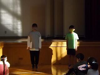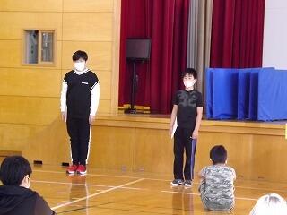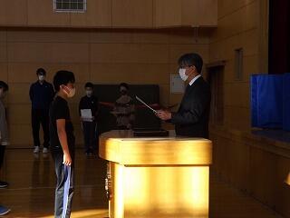 25日(月)、朝の全校集会で後期児童会の認証式が行われました。