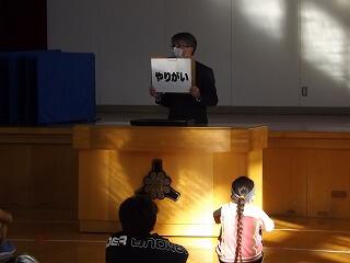 不審者に出会った時の対応の基本「いかのおすし」や、お留守番の基本「いいゆだな」についてのお話がありました。