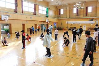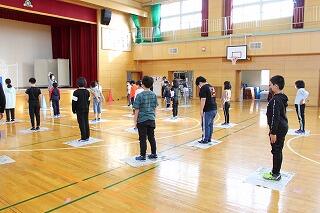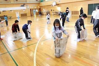 26日(火)の朝の全校体力づくりは、体幹トレーニングの第2弾として、新聞紙を使った活動を行いました。