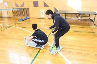 最初、体育館でフォームの最終確認した後、グラウンドに出て記録を測定しました。