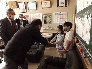 定規の贈呈は、千歳市青少年育成市民会議が市内各小学校1年生に対して毎年行っているもので、今年度は東小学校の1年生が代表して受け取りました。