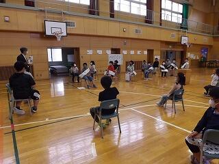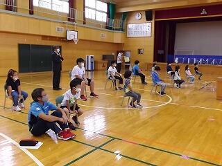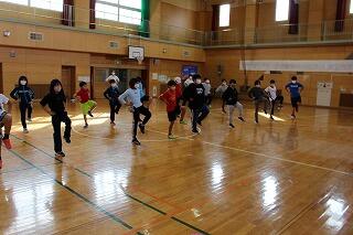 本日、朝のパレットタイムで全校児童による体力づくりが行われました。