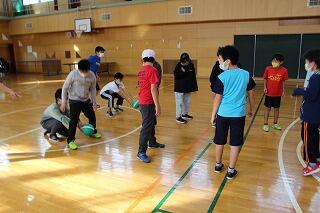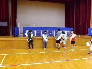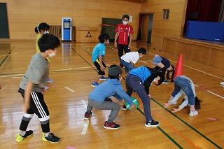 最後はおまけ。縦一列になってボール送りゲームです。