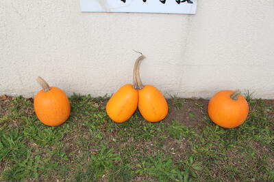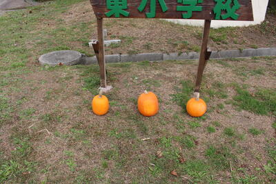 この度、幌加環境保全会よりカボチャの寄贈があり、校門前に飾りました。