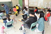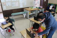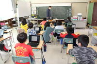 12日(月)、3・4年生がタブレット端末を初使用しました。