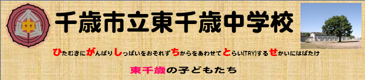 千歳市立東千歳中学校 〒069-1183 北海道千歳市幌加731番地の117 TEL:0123-21-3300 FAX:0123-21-3301