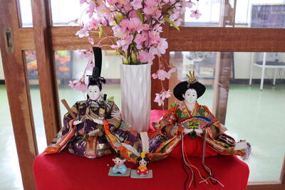 玄関に『お内裏様とお雛様』が飾られています。