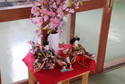 今日は5時間授業で、部活動がお休みですので、放課後の時間、先生方で『ひな人形』を飾りました。