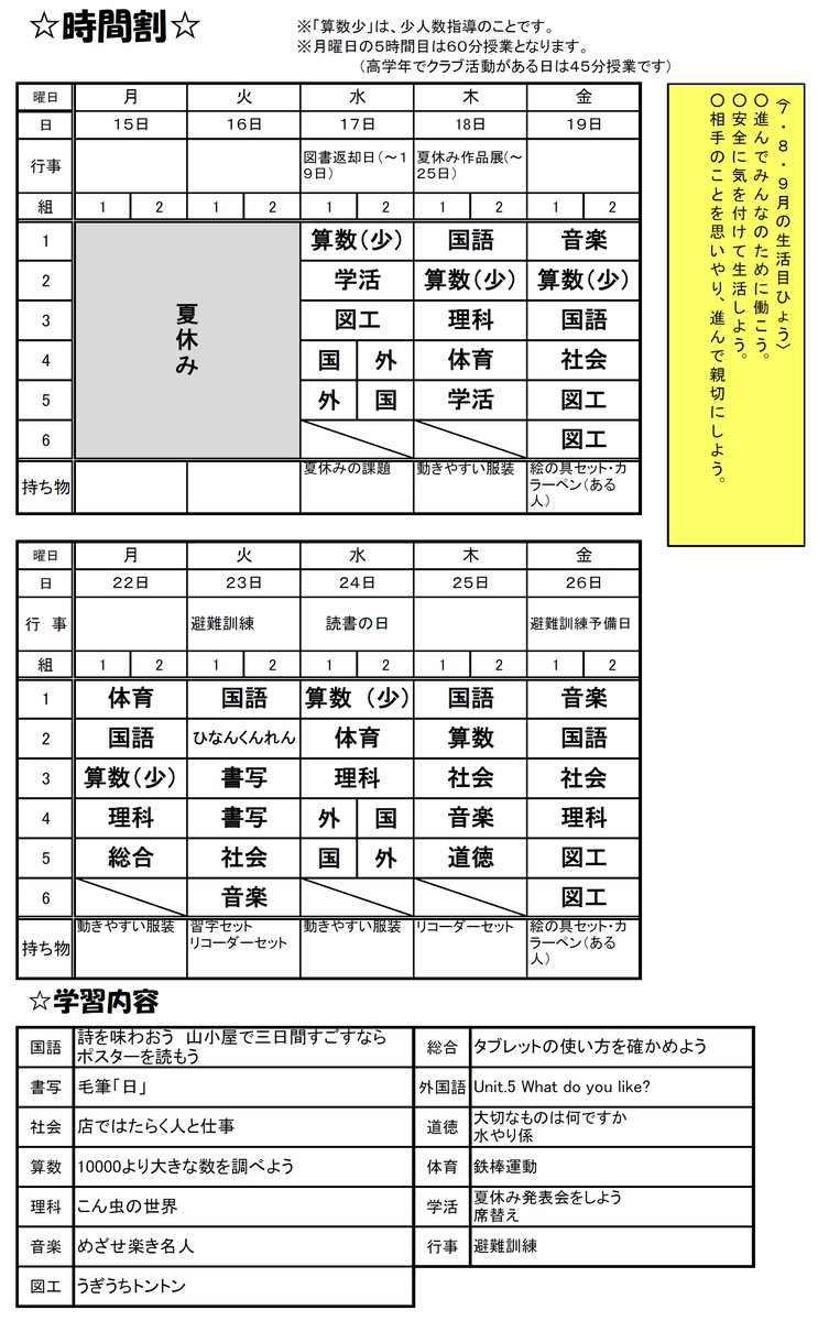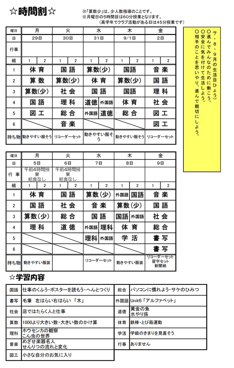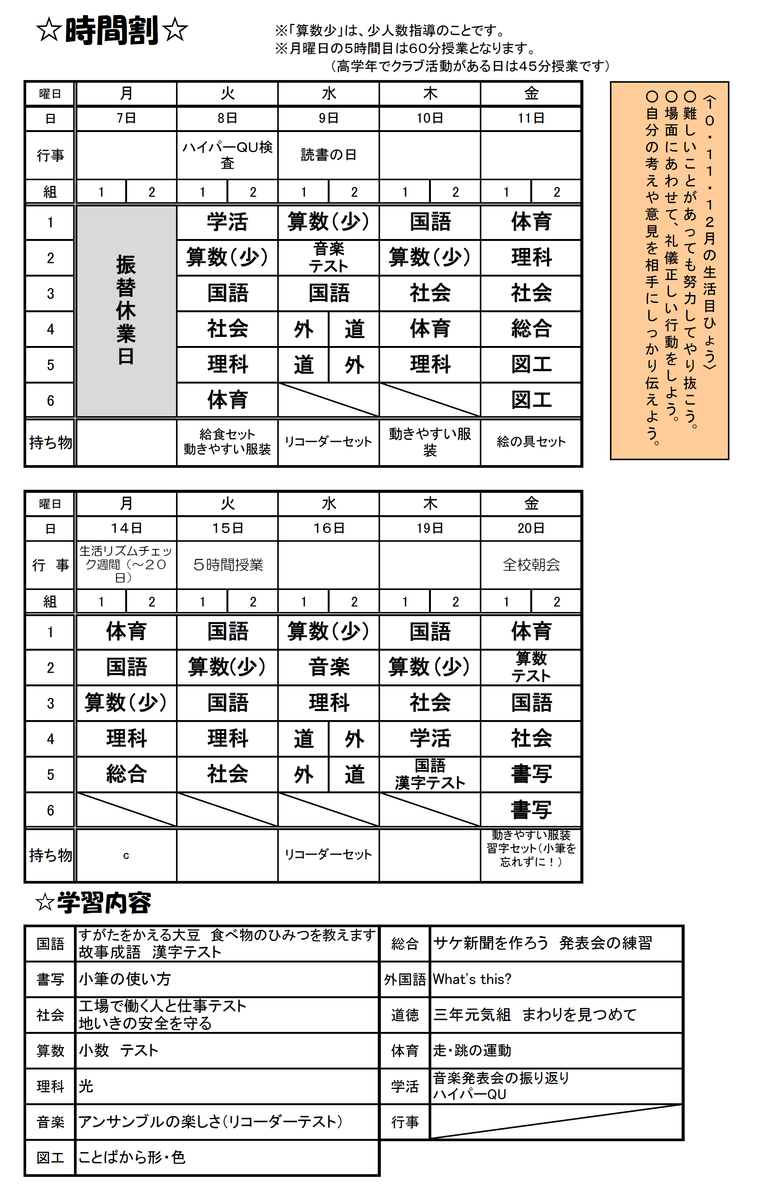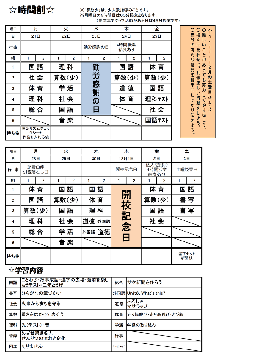 3年生の時間割