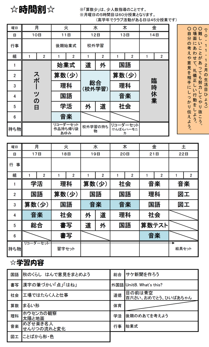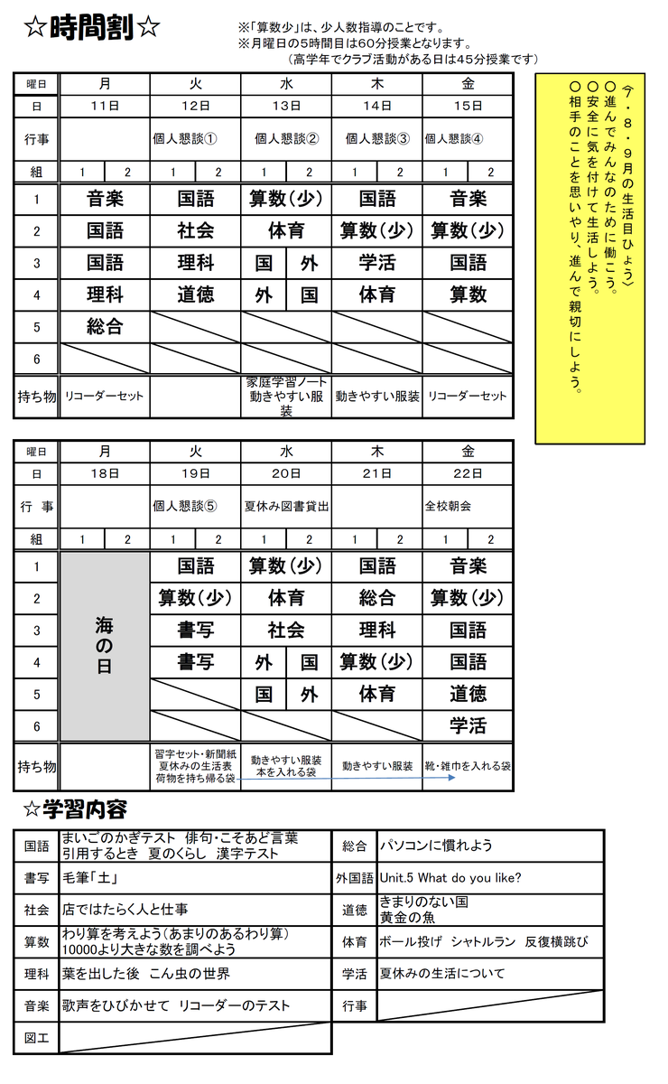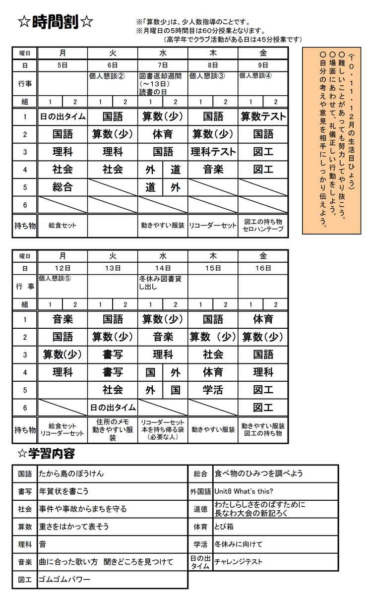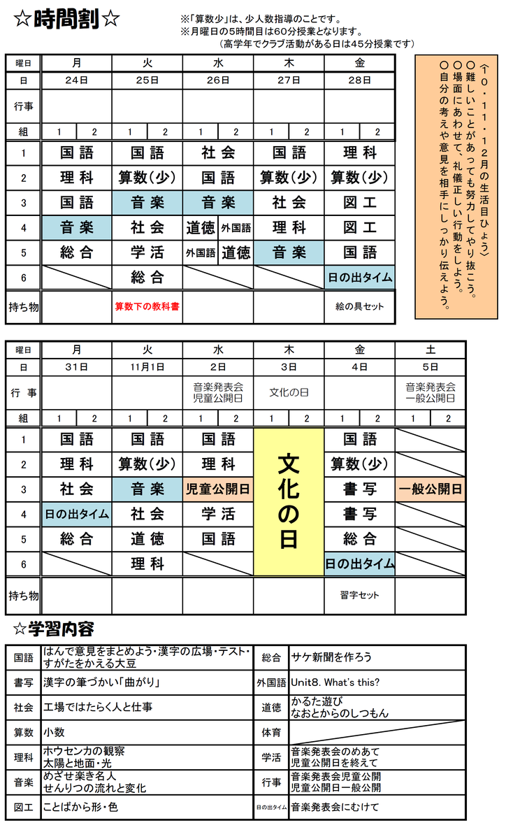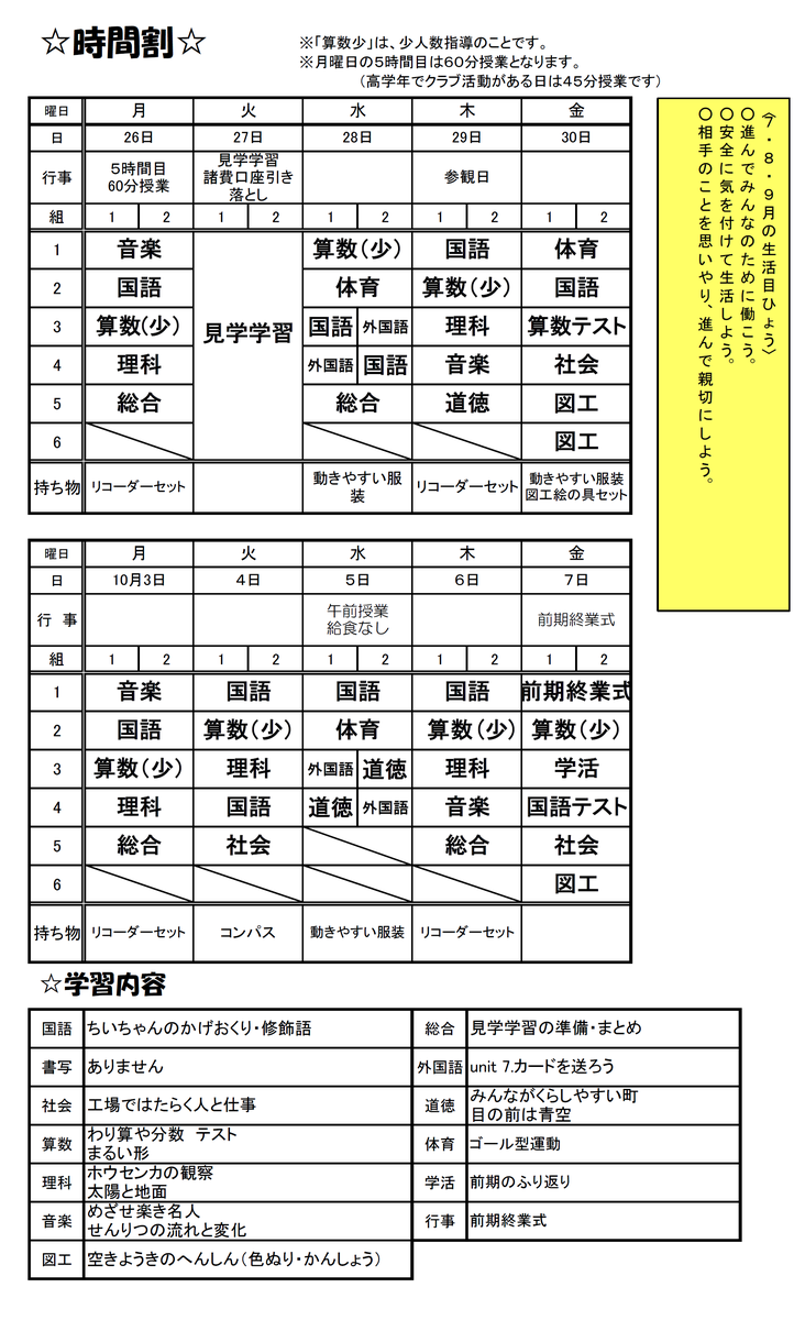 3年生の時間割