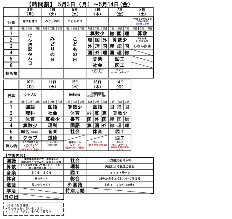 4年生の時間割