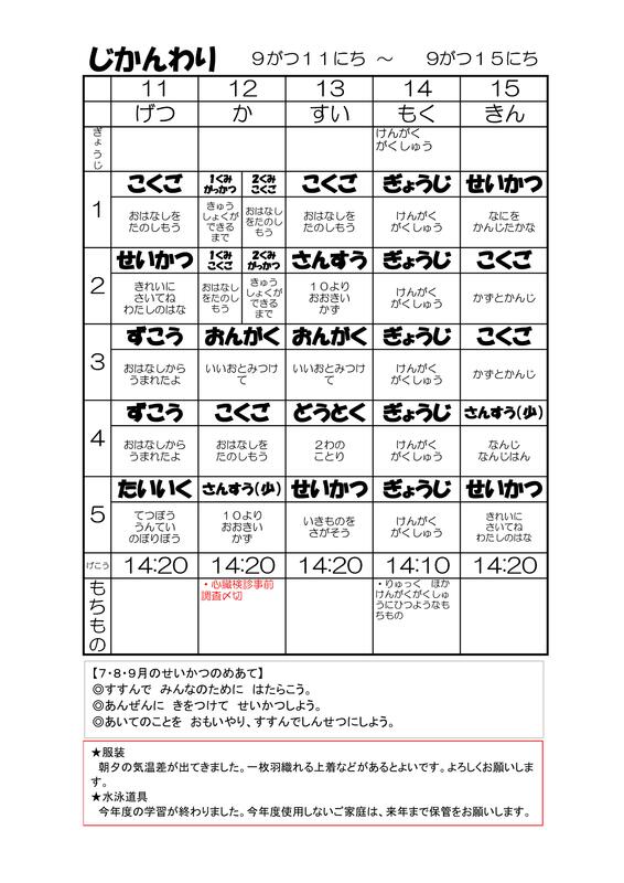1年時間割0911-0915
