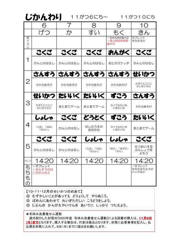 1年時間割1106-1110
