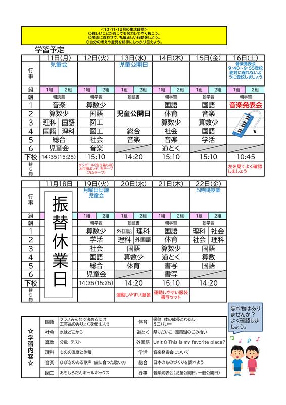 時間割 4年 11.11~11.22