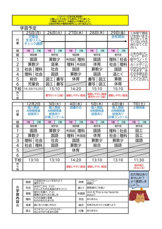 4年 時間割11.25~12.7
