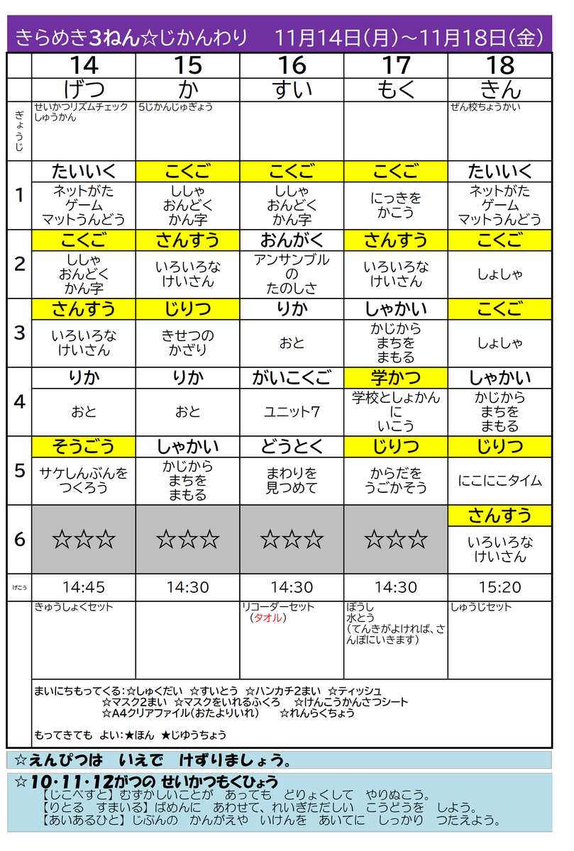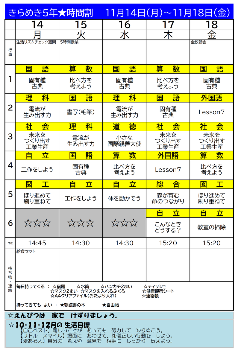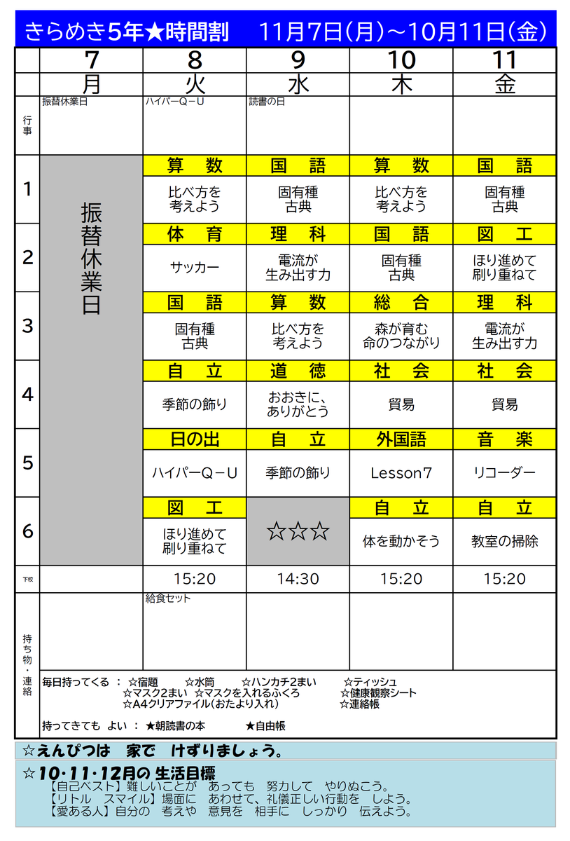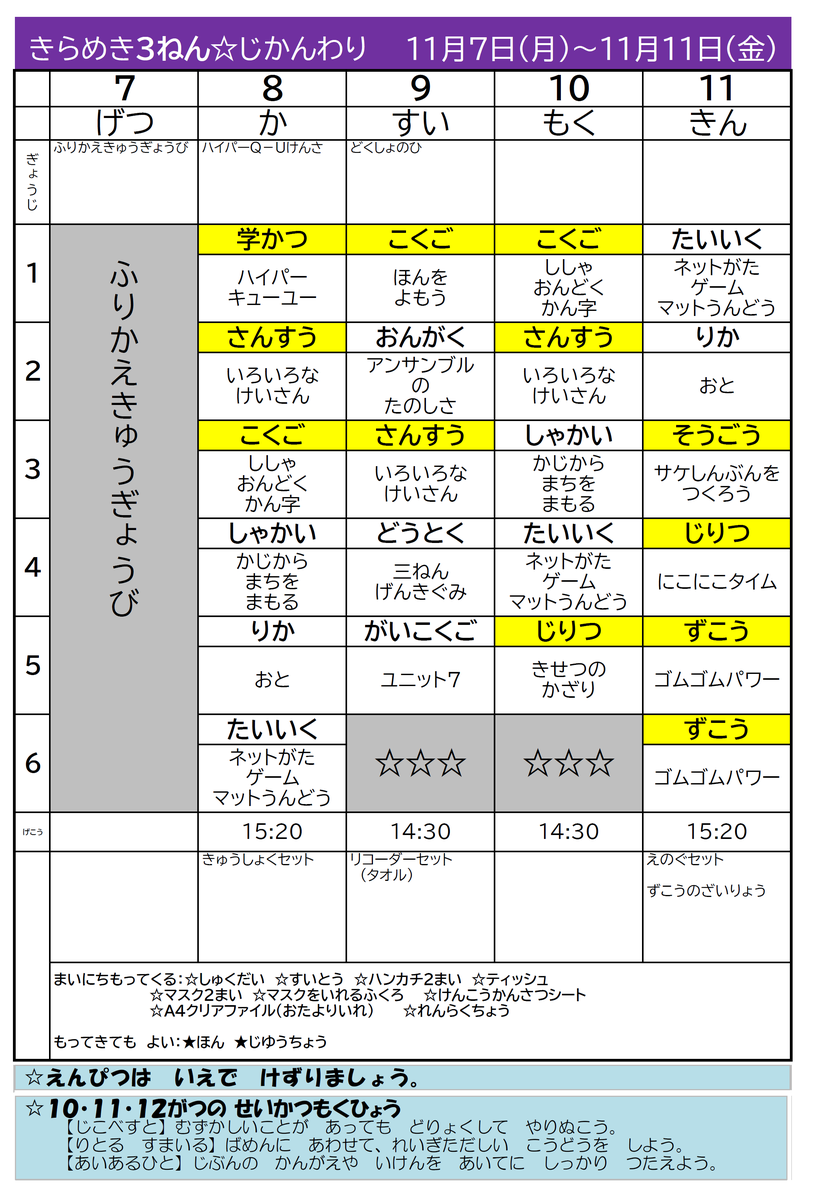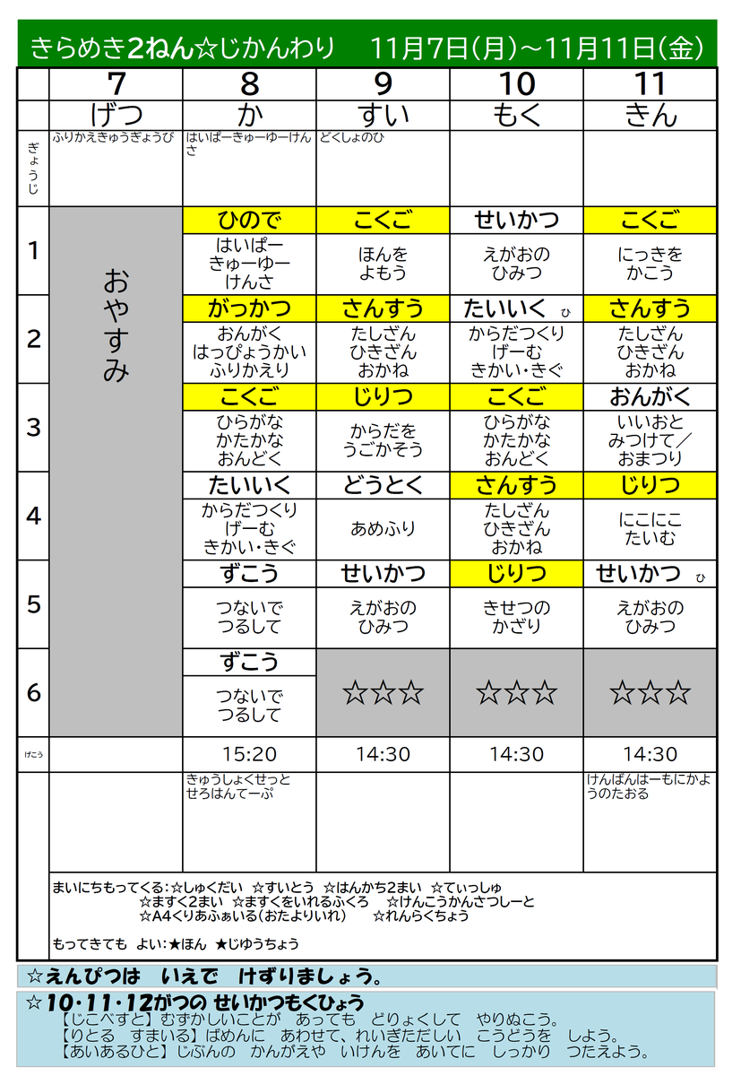 【時間割】きらめき時間割1107-1118 投稿日時 : 2022/11/04 担当 カテゴリ: 【時間割】きらめき時間割1107-1118-1.pdf 【時間割】きらめき時間割1107-1118-2.pdf