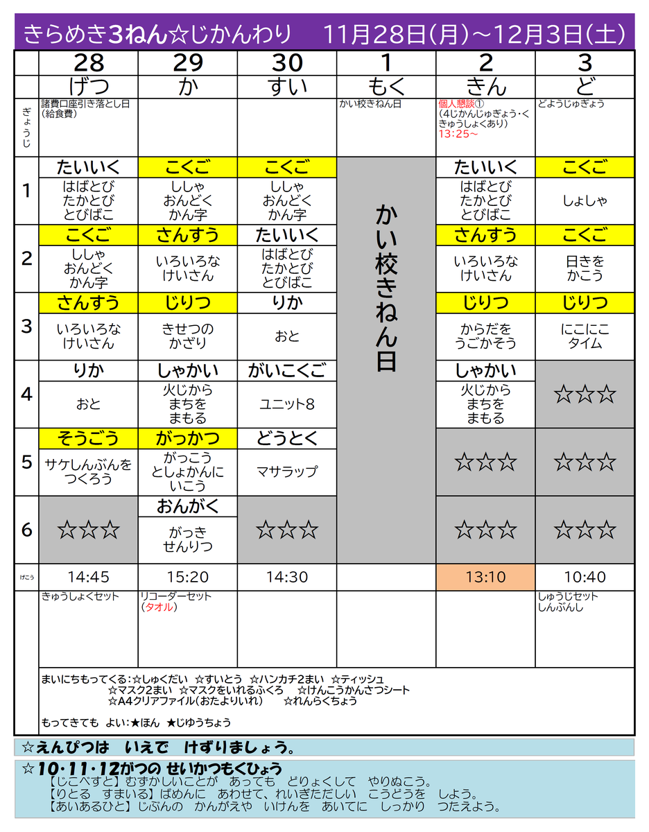 【時間割】きらめき時間割1121-1203 投稿日時 : 2022/11/18 担当 カテゴリ: 【時間割】きらめき時間割1121-1203-1.pdf 【時間割】きらめき時間割1121-1203-2.pdf