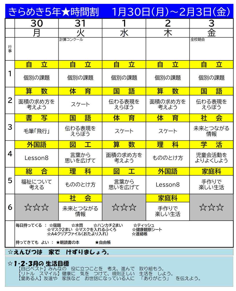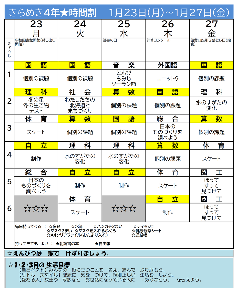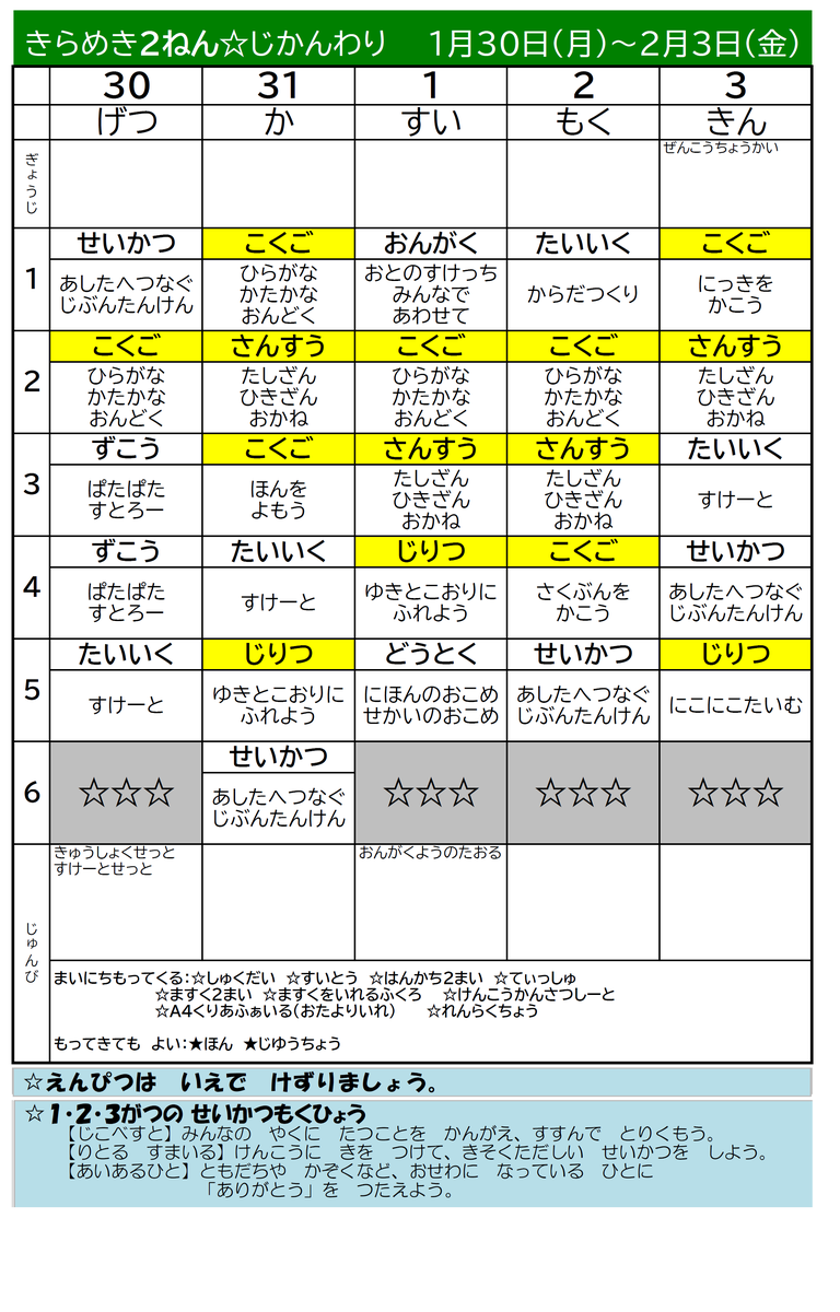 【時間割】きらめき時間割0123-0203 投稿日時 : 2023/01/20 担当 カテゴリ: 【時間割】きらめき時間割0123-0203-1.pdf 【時間割】きらめき時間割0123-0203-2.pdf